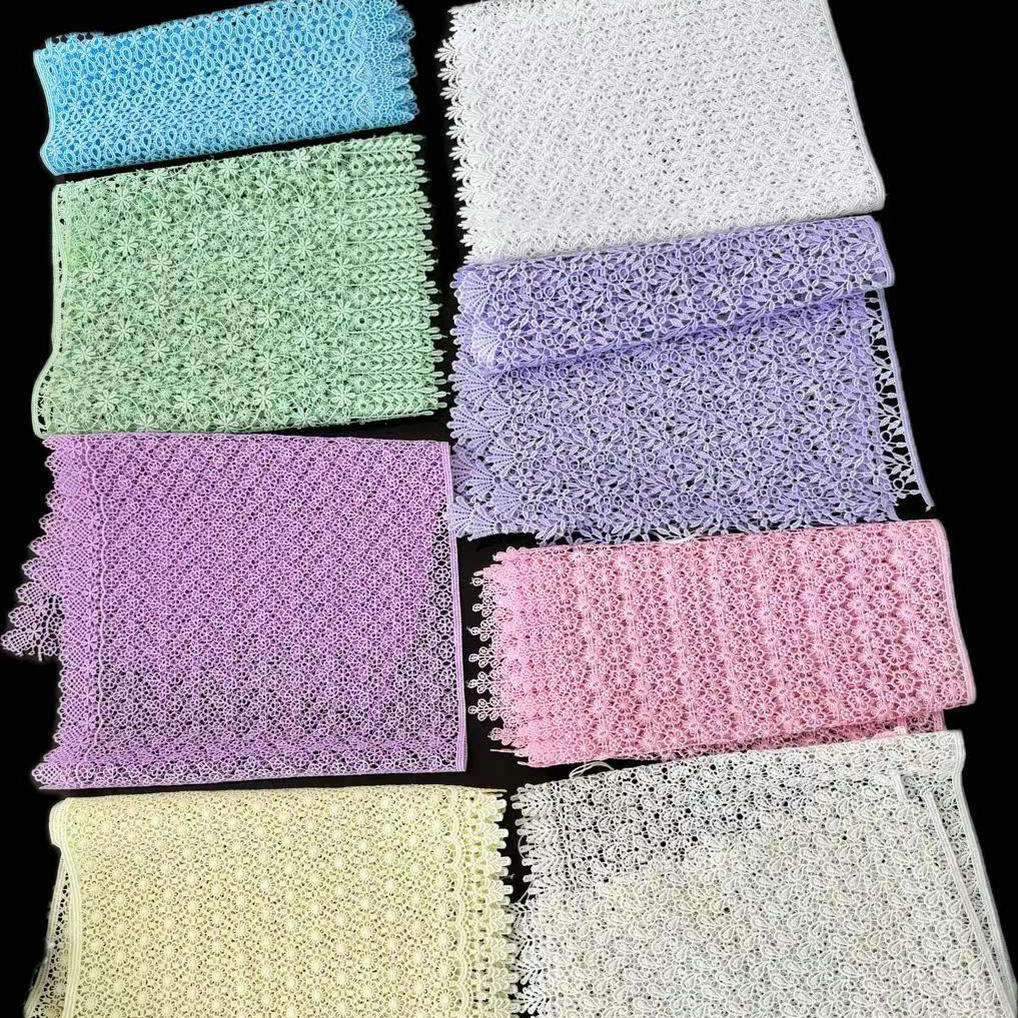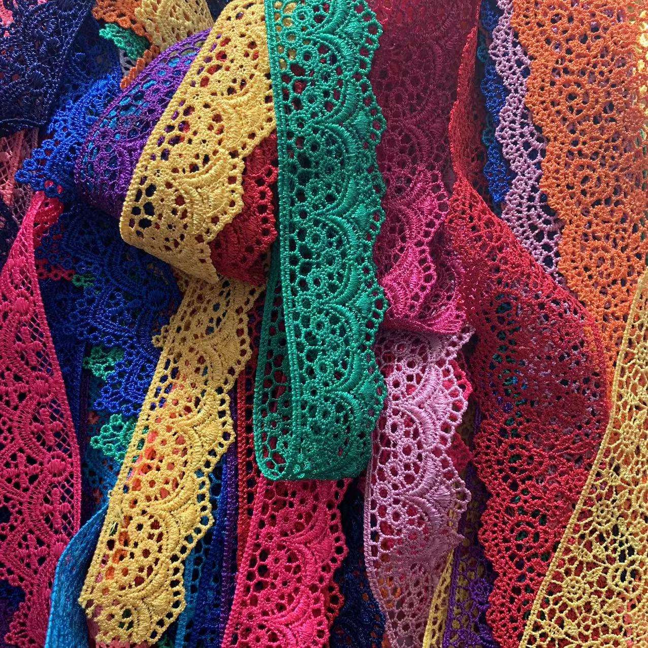 Custom Polyester Lace στενό κέντημα δαντέλες δαντέλας πολλαπλών χρώματος από υλικό πολυεστέρα υψηλής ποιότητας, με λεπτή χειροτεχνία κεντήματος, διαθέτει πλούσια χρώματα και ρυθμιζόμενο πλάτος. Είναι κατάλληλο για τη διακόσμηση γυναικείων ενδυμάτων, παιδικών ενδυμάτων και οικιακών ειδών